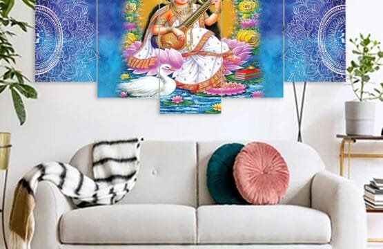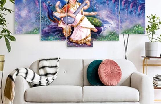 Saraswati Hindu Religious Canvas Prints 3MM Board & Mat Lamination